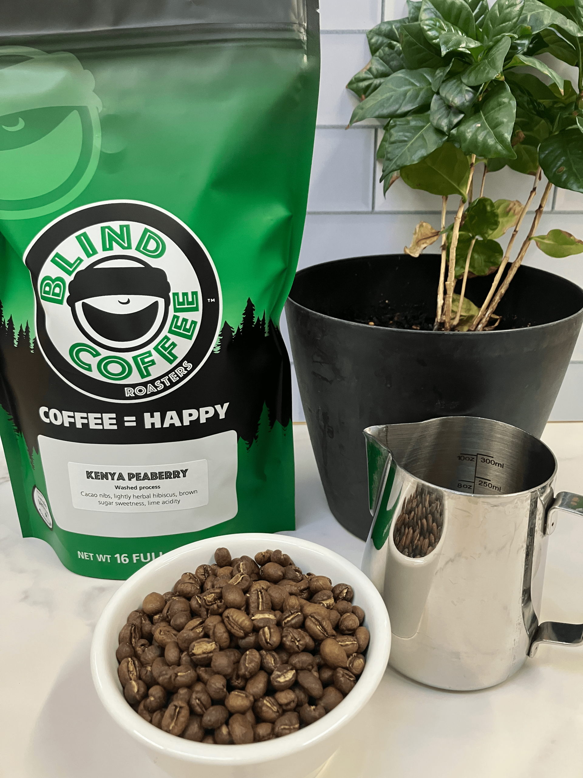 Kenya Peaberry is a City Roast. We pull our City Roasts from the roaster just as the bean turns a chocolatey color. At this stage, the coffee’s authentic flavors shine without any smokiness or oil. This Kenyan coffee is on the light side of medium where the brown sugar sweetness comes through. This roast level balances cacao with a bright acidity.